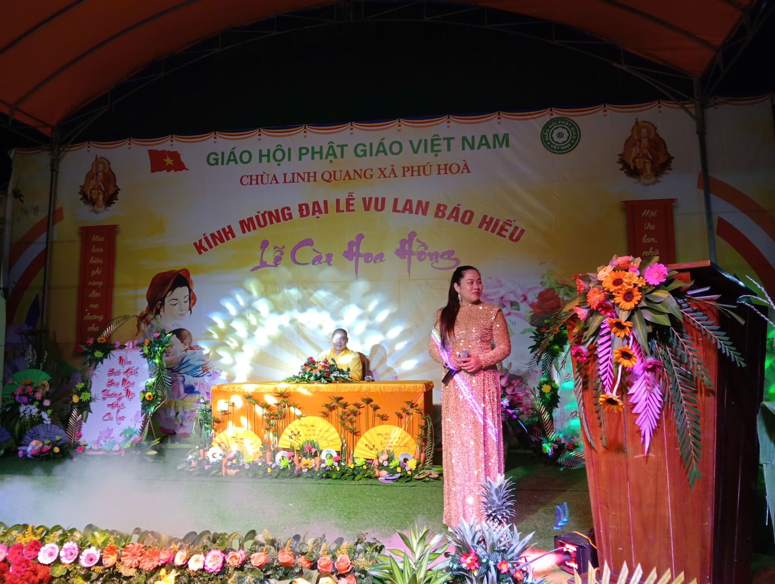 Sau phần văn nghệ chào mừng là phần lễ chính, Đại Đức Thích Huệ Trí, trụ trì chùa Linh Quang chủ trì Đại Lễ. Đại lễ diễn ra với các nghi thức tôn giáo trang nghiêm, lắng động như đại chúng đã dành một phút mặc niệm để tưởng nhớ về thâm ân to lớn của chư Phật, công ơn giáo dưỡng của thầy tổ bổn sư, công ơn sinh thành dưỡng dục của cha mẹ. Bên cạnh đó cũng là tưởng nhớ đến ơn đất nước đồng bào, ơn chúng sanh vạn loại, ơn các vị anh linh chiến sĩ đã quên mình cho hòa bình và hạnh phúc của muôn người. Tiếp theo nghi thức dâng y là khoảnh khắc thiêng liêng mang lại biết bao nhiêu nỗi niềm và phút giây lắng đọng trong lòng mỗi người - Nghi lễ Bông Hồng Cài Áo.