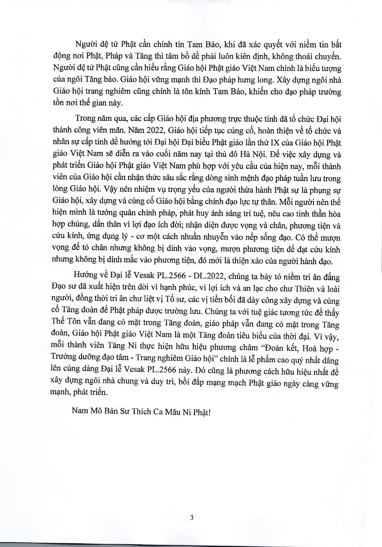 THÔNG ĐIỆP, DIỄN VĂN, Ý NGHĨA ĐẠI LỄ PHẬT ĐẢN - PL 2566