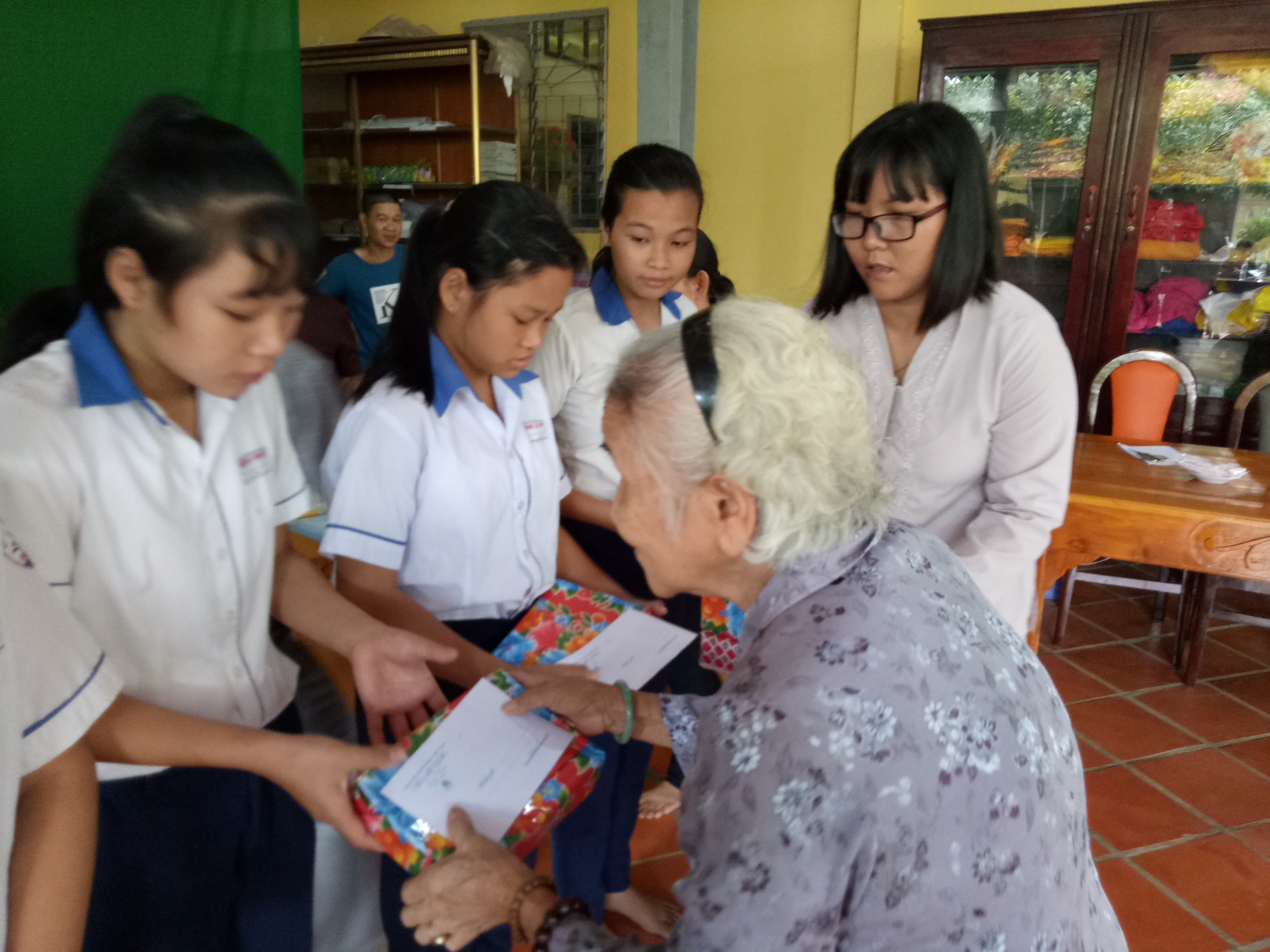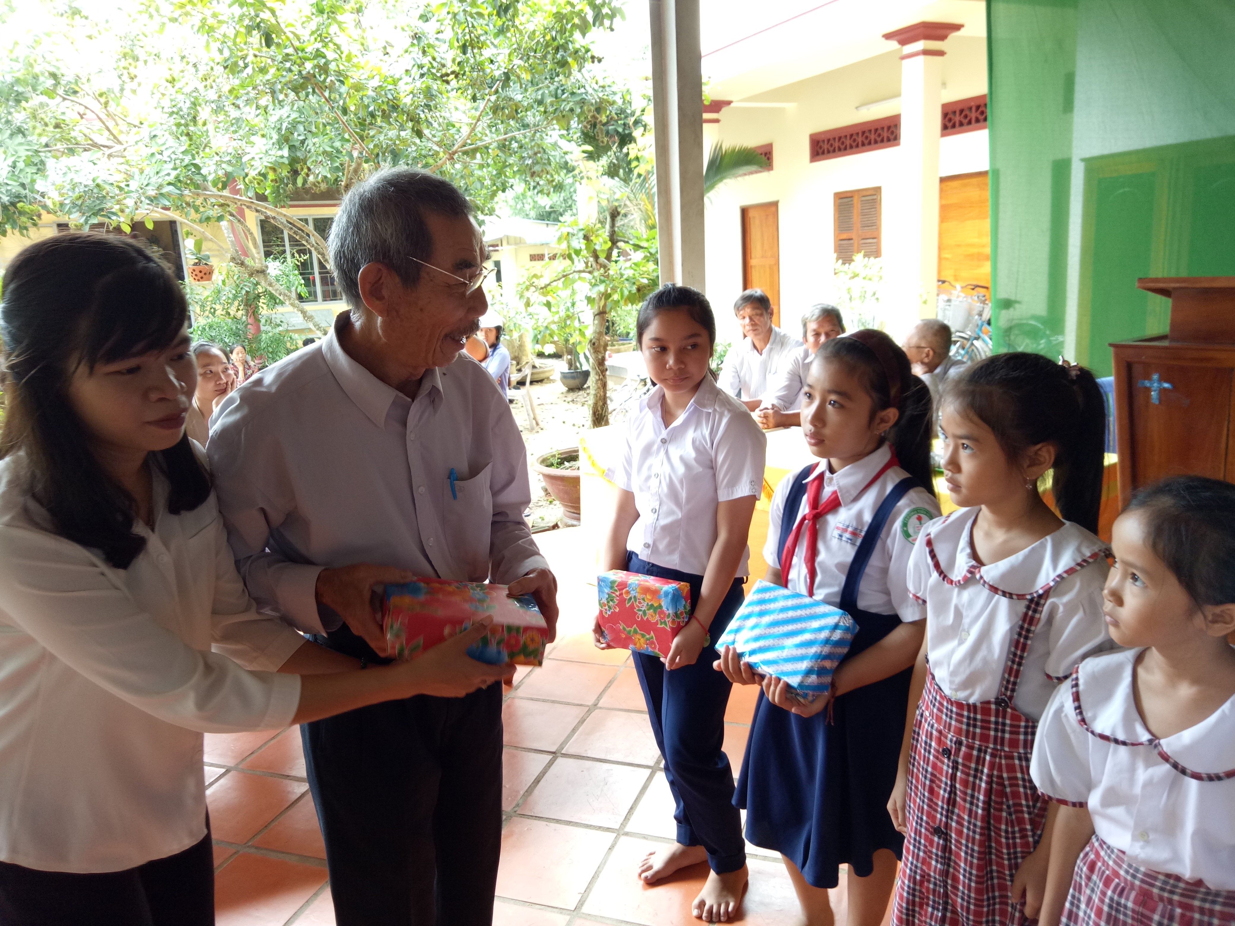 Các cụ trong ban bảo trợ tặng học bổng cho học sinh